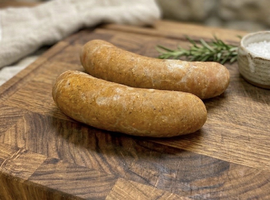 Our Boudin style sausage is a complete flavor bomb! We roast pork with traditional Cajun herbs and spices until the pork shreds down. We then add it to fresh pork, more herbs and spices, and some fresh rice before stuffing it into an all natural casing.